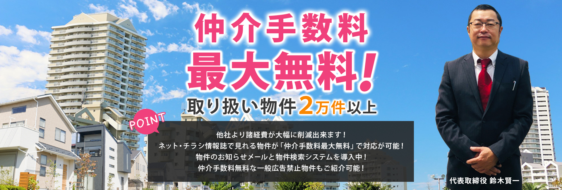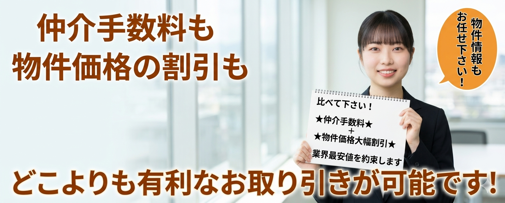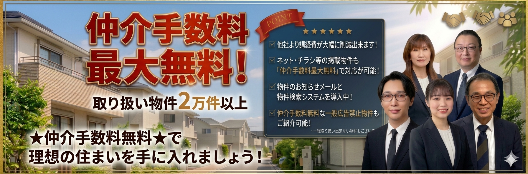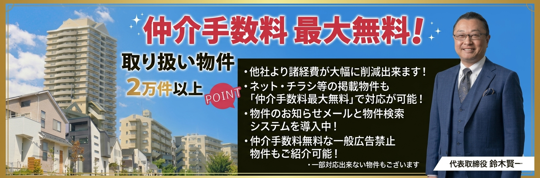 全ての物件の仲介手数料を無料または、半額で対応いたします。