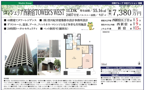 仲介手数料無料! コンシェリア西新宿TOWER'S WEST 2407号室 (リフォーム前から公開いたします)