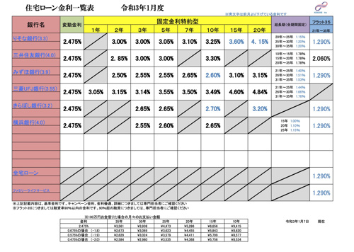 住宅ローン金利一覧 2021年(令和3年)1月「謹賀新年 明るい年にしましょう!」