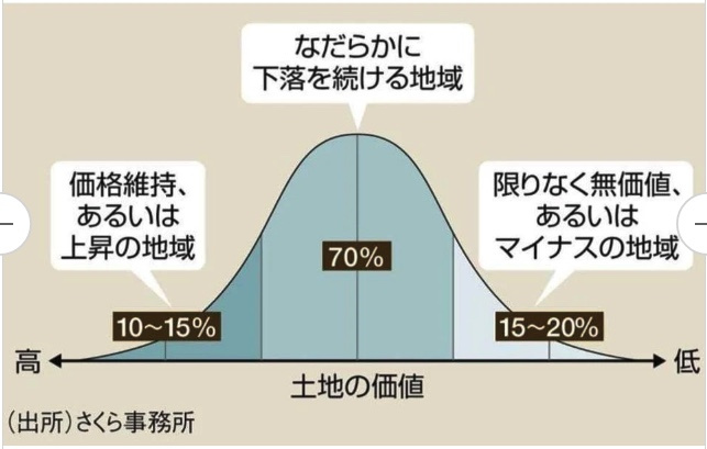 「厳密にいえば“三極化”。日本の不動産は『価格が維持・あるいは上昇する地域』『下落を続ける地域』『限りなく無価値・あるいはマイナスの地域』の三極化が進んでいます。そして、価格が維持されるエリア、あるいは上昇するエリアはほんの一部。つまり、大半の不動産は今後、価格が下落していくものと考えられます」