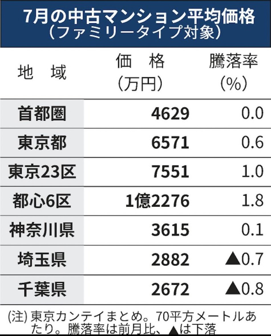 東京23区が前月比1.0%高い7551万円でした。