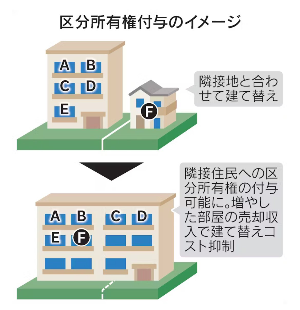 マンション建て替え 隣接住民に区分所有権付与 (日経新聞より)