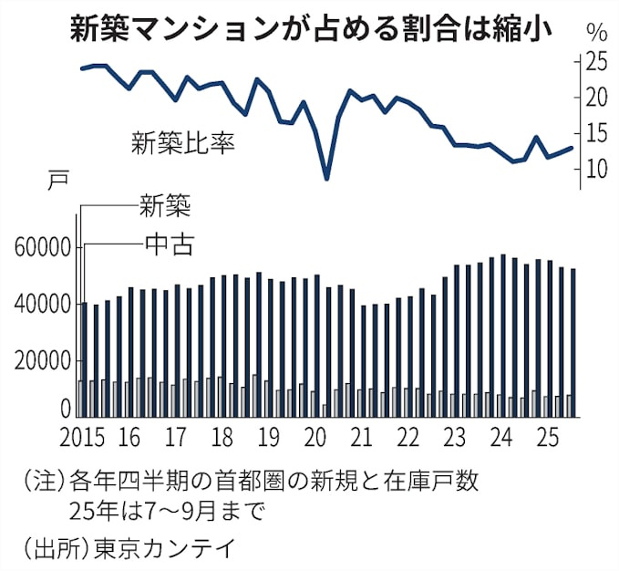 首都圏における新築の供給数が減少するなかで、